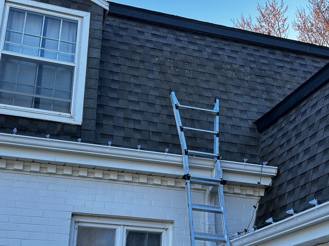 This roof had some pretty noticeable stains, and they weren’t uniform enough to just pass as darker shingles. That north-side algae is sneaky — it usually shows up there since that side doesn’t get much sunlight. Without regular sun exposure, moisture hangs around longer and gives algae the perfect environment to grow. It took a stronger mix of our algaecide than usual, but it did the job and the stains came completely off.